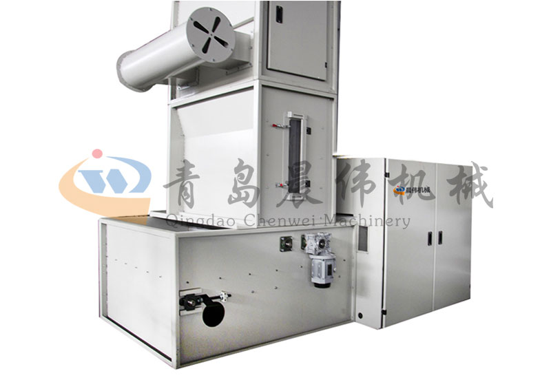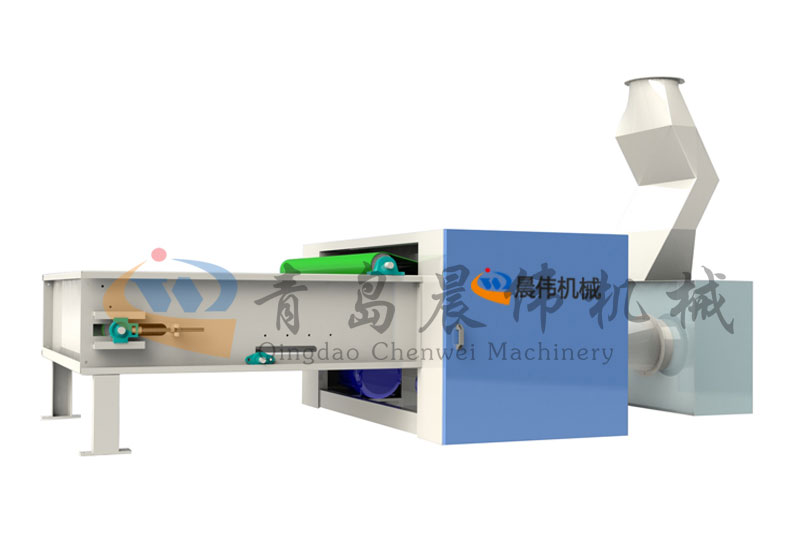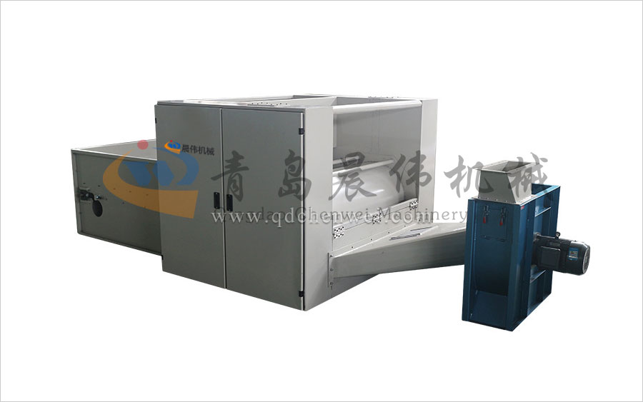 各種不同纖維被放入水平輸送簾,經(jīng)壓棉輥和對輥羅拉喂入,經(jīng)輸棉風(fēng)機(jī)以適量的風(fēng)量輸送纖維原料供后道工作使用;并配備橋式除鐵裝備。
